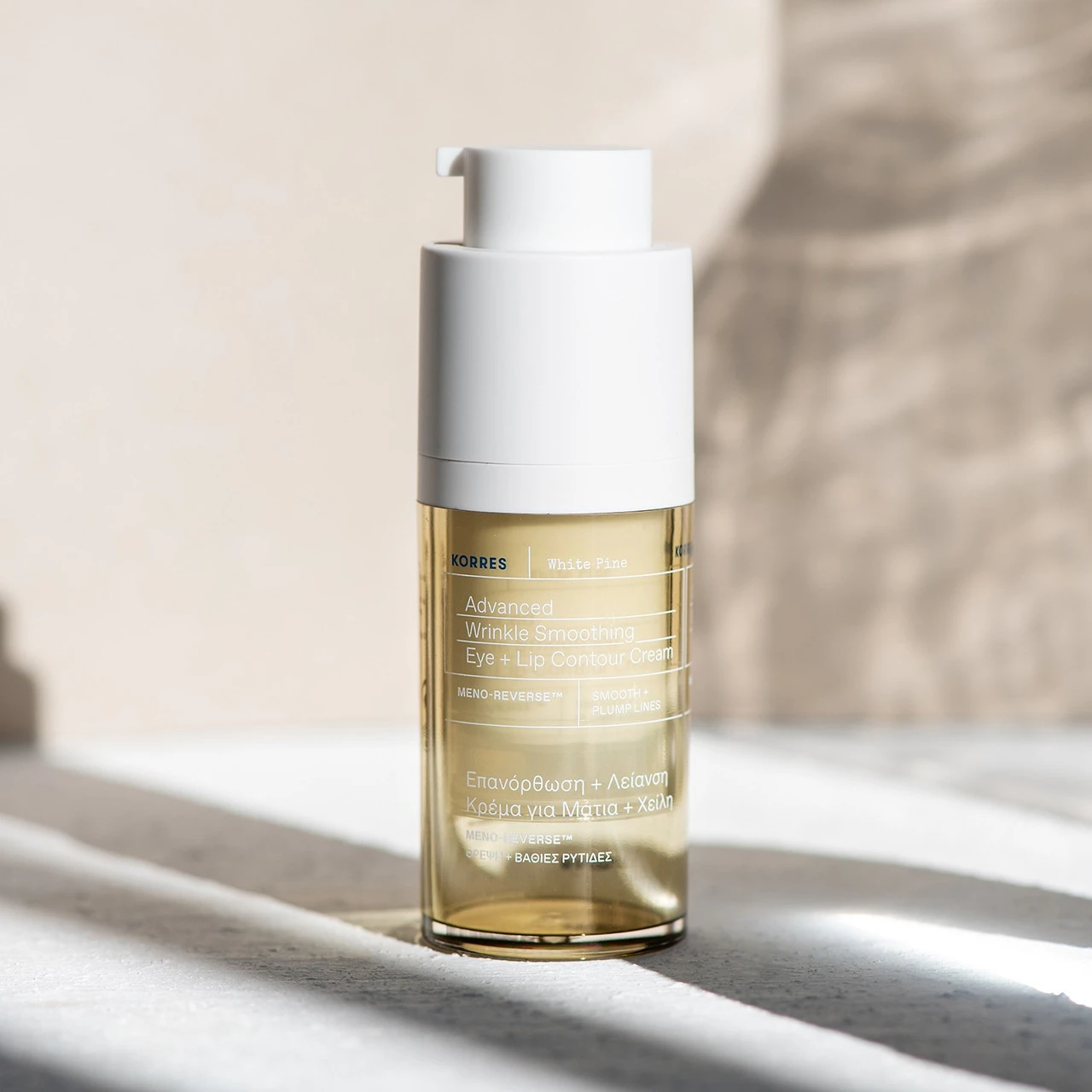 An intensive cream to smooth the appearance of wrinkles around the delicate eye and lip areas, specifically formulated for women after menopause.