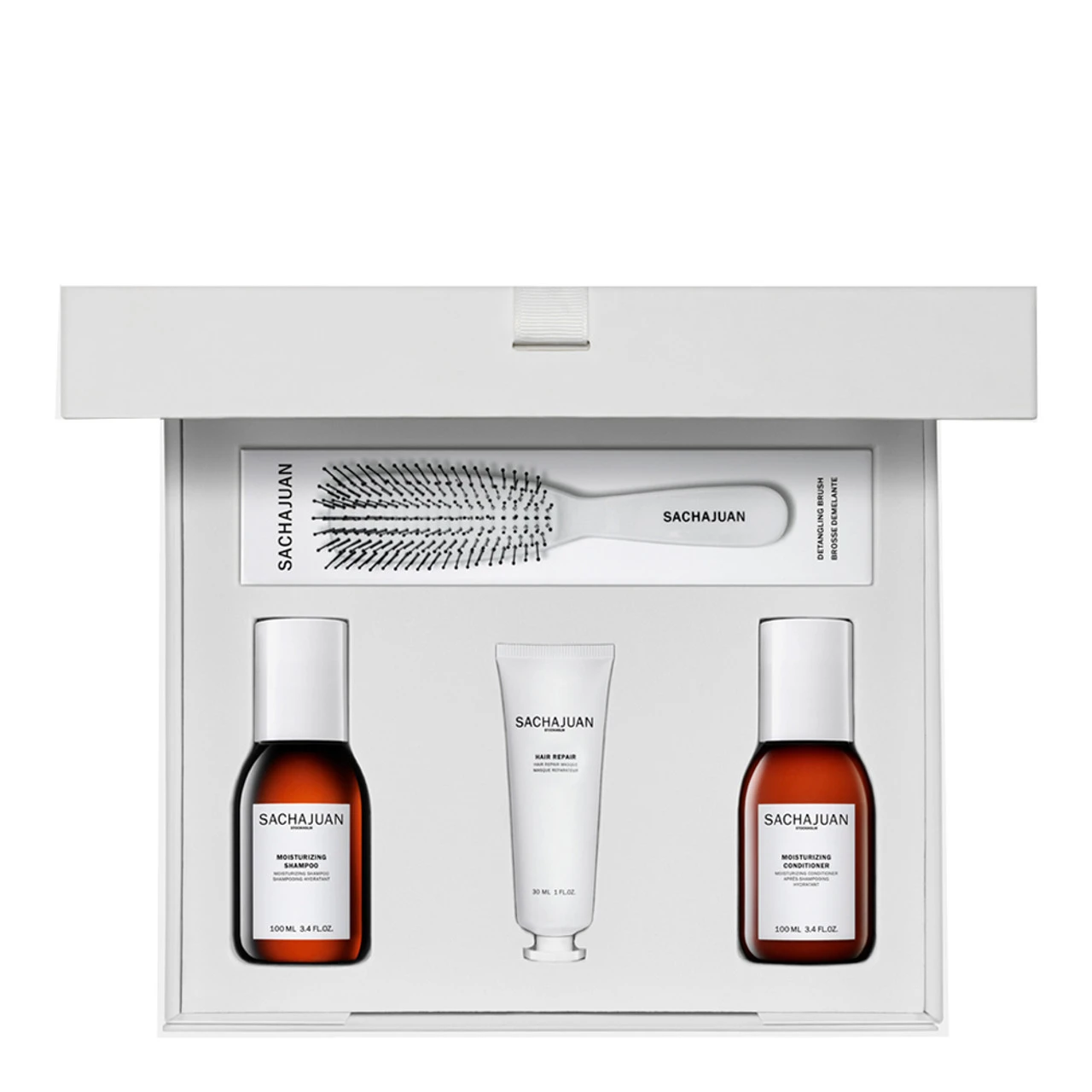 A premium yet accessible gifting option for the most devout of SACHAJUAN users as well as those who are new to the brand. A great introduction to the Moisturising range, designed designed to replenish moisture, restore vitality, and improve the overall health and appearance of the hair, without weighing it down.Â