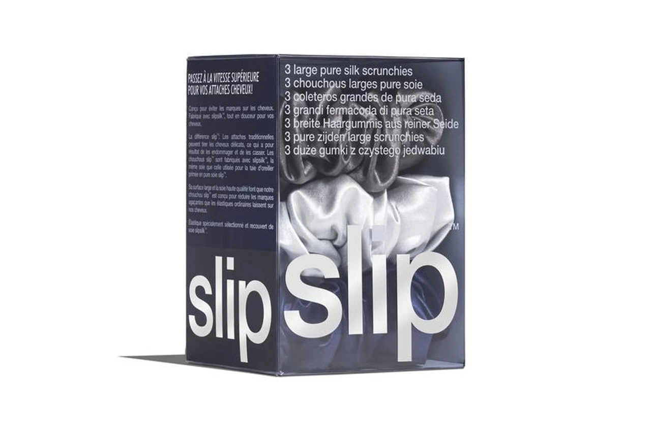 From the makers of the bestselling Slip Pure Silk Pillowcase, Slip have made luxury 100% silk (exclusive of elastic) scrunchies to help you style your hair without the worry of pulling, creasing or damaging your delicate hair. Made with the highest grade (6A) long fibre mulberry silk, these super smooth silky hair scrunchies are a great alternative to traditional hair ties which can tug, damage and cause breakage. Using the same award-winning silk as their luxury pillowcases, this pack of midnight inspired scrunchies, are great for all hair types, and styles, and also make a great little wrist accessory too!