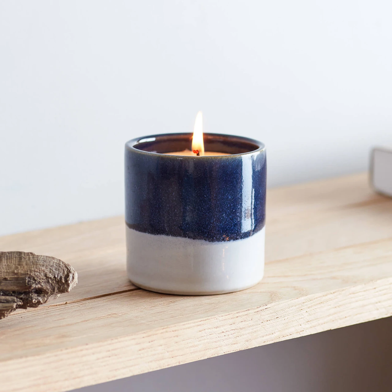 Handmade in a family-run factory in Portugal, this navy blue pot is filled with awakening marine scents with salty accords, with floral notes on a bed of musk.